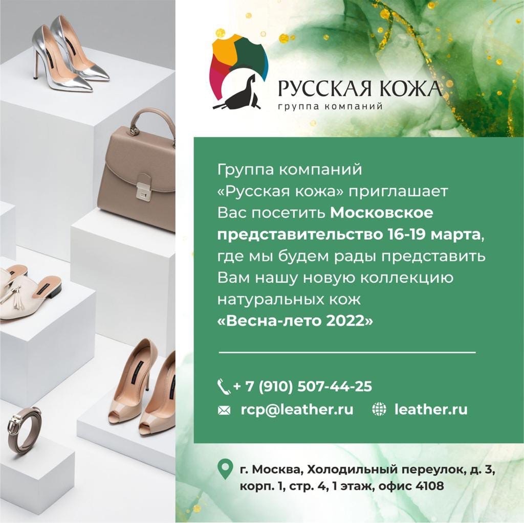 Dear customers, we are glad to inform you that we invite you to view a new collection of exclusive natural leathers, the colors of the summer 2022 season in our Moscow representative office.